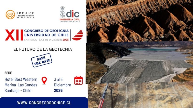 La Sociedad Chilena de Geotecnia (SOCHIGE) y la Universidad de Chile anunciaron el XII Congreso Chileno de Geotecnia, que se realizará en Santiago del